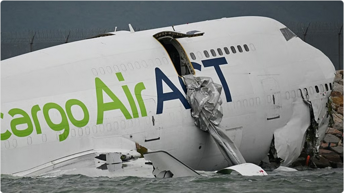 شهد مطار هونغ كونغ فجر اليوم حادثاً مأساوياً أدى إلى وفاة شخصين، بعد أن انحرفت طائرة شحن عن مسارها وتحطمت جزئياً في البحر.