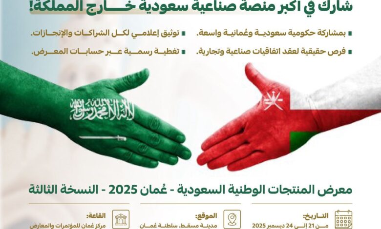 ويأتي تنظيم المعرض في إطار تعزيز التكامل الصناعي الخليجي وتمكين الصادرات السعودية وفتح آفاق جديدة للاستثمار المشترك بين المملكة العربية السعودية وسلطنة عُمان، بما ينسجم مع مستهدفات “رؤية السعودية 2030” و”رؤية عُمان 2040”.